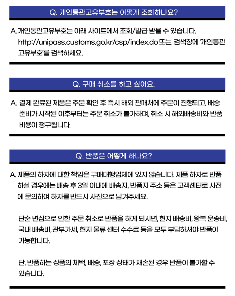 - 고객 변심으로 인한 교환/반품은 상품 수령 후 14일 이내 가능합니다.
